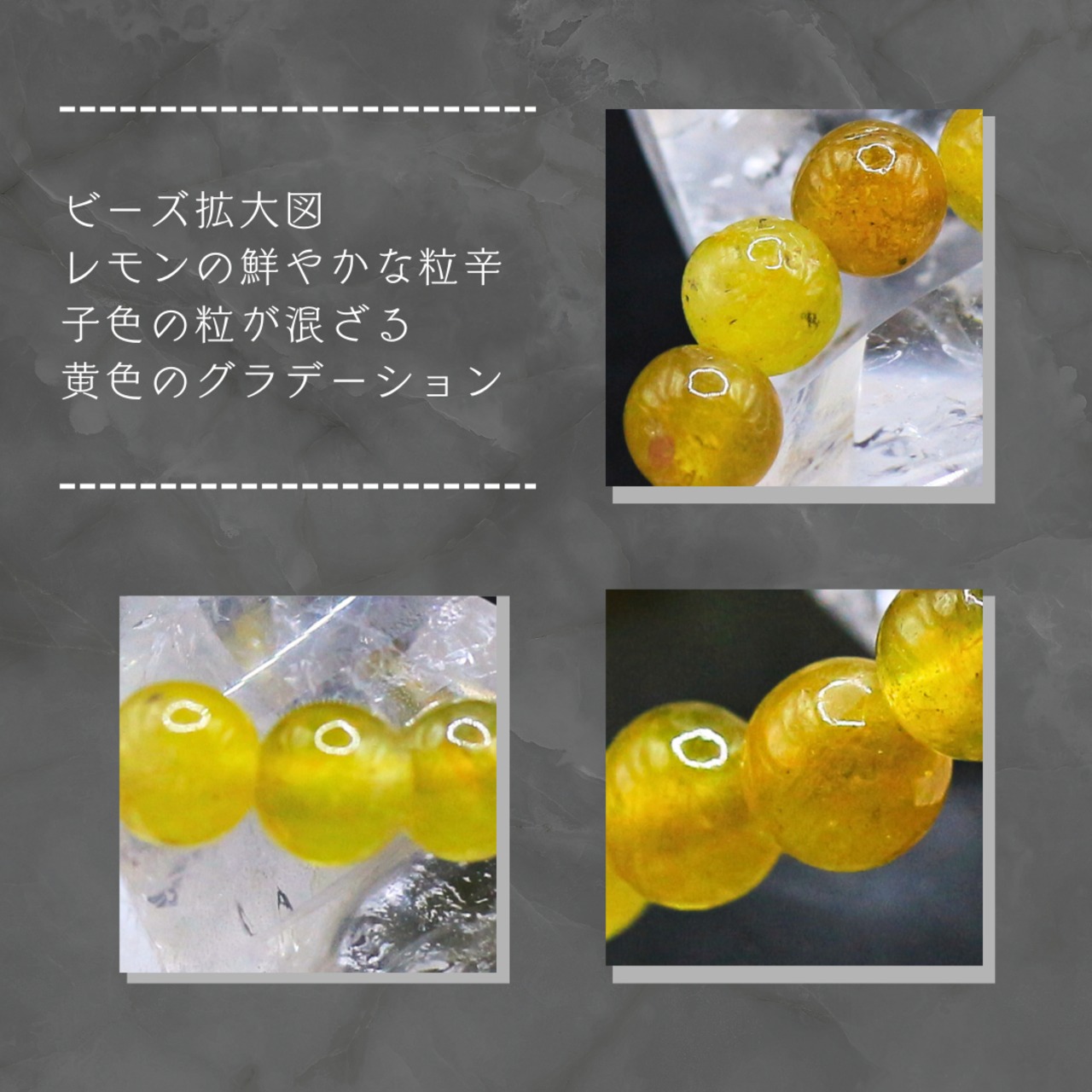 また、天然石を使用したおりますので、クラックや傷・曇り等の個体差がございます。
