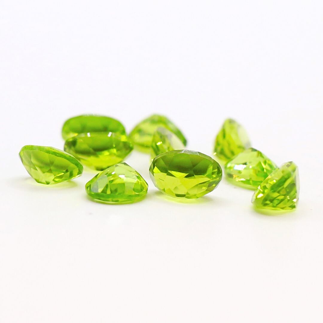 ペリドットは、マグネシウム・鉄・ケイ素などを含んだ珪酸塩鉱物で、緑の色合いは含まれる鉄分によって濃淡が分かれます。鉄分が多いほど、濃い緑になるので産地による色の違いを楽しめる宝石です。