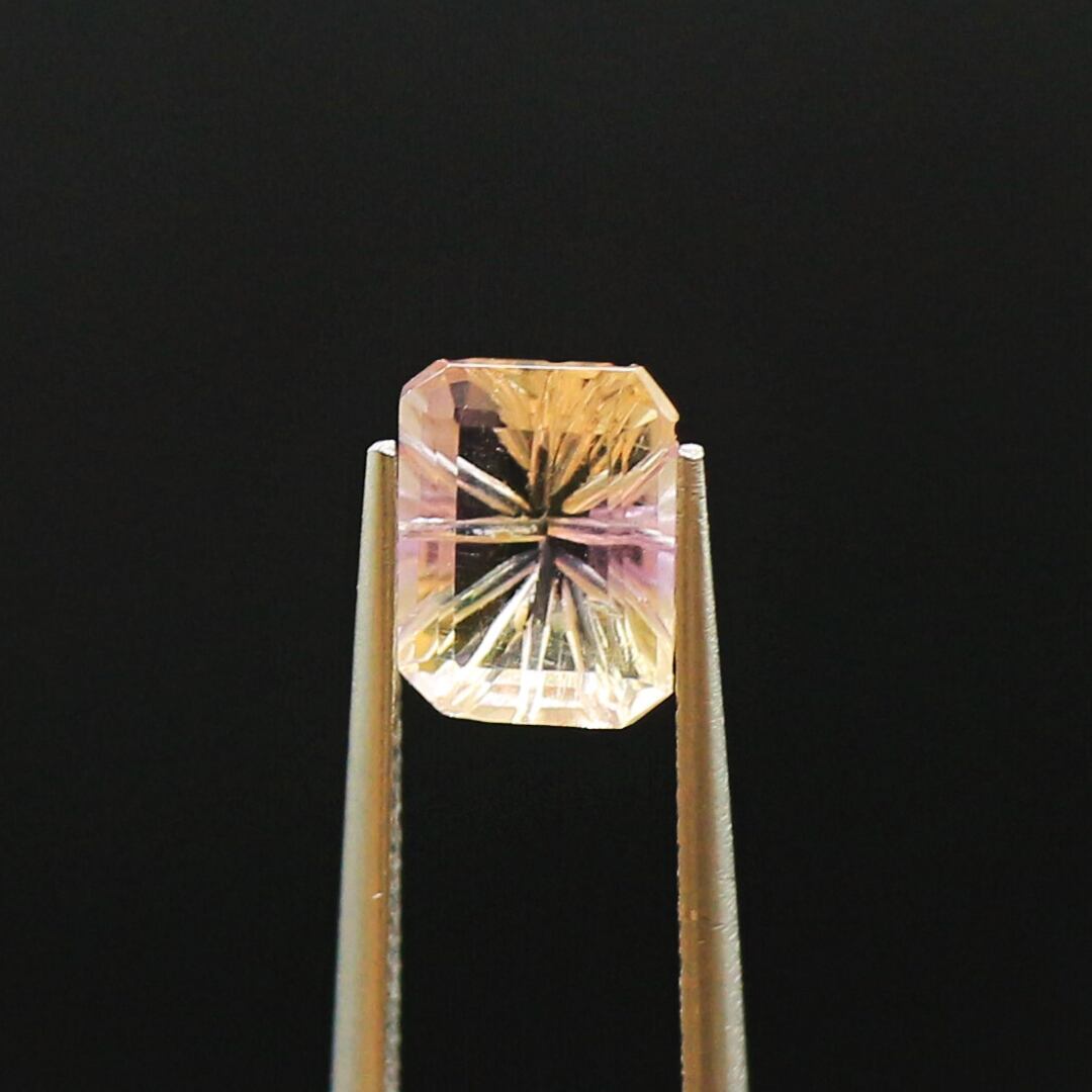 アメトリンは、紫のアメジストと黄色のシトリンが混ざり合った面白い特徴を持つ鉱物で、2つの石の名前を組み合わせて名づけられました。