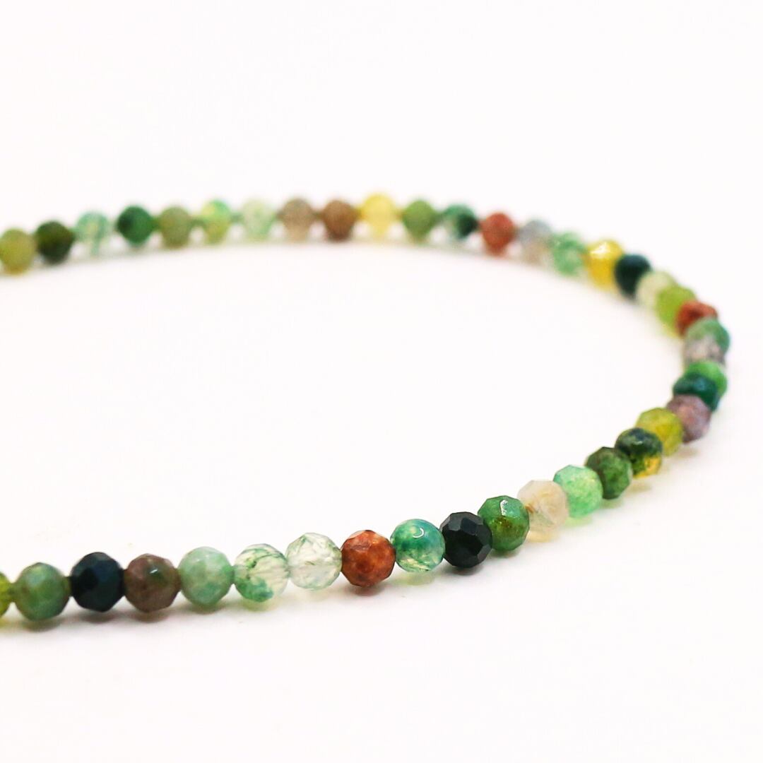 内包物によって濃い緑や赤みを帯びた粒があり、森林のようなアースカラーを楽しめます