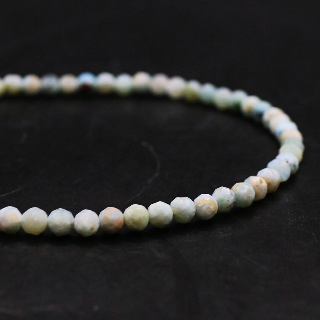 ドミニカ共和国でしか採れない貴重な天然石で 別名:ドルフィンストーンと呼ばれ、地中海を切り取ったような水色が美しく、愛と平和の象徴として有名なヒーリングストーンとして人気があります。