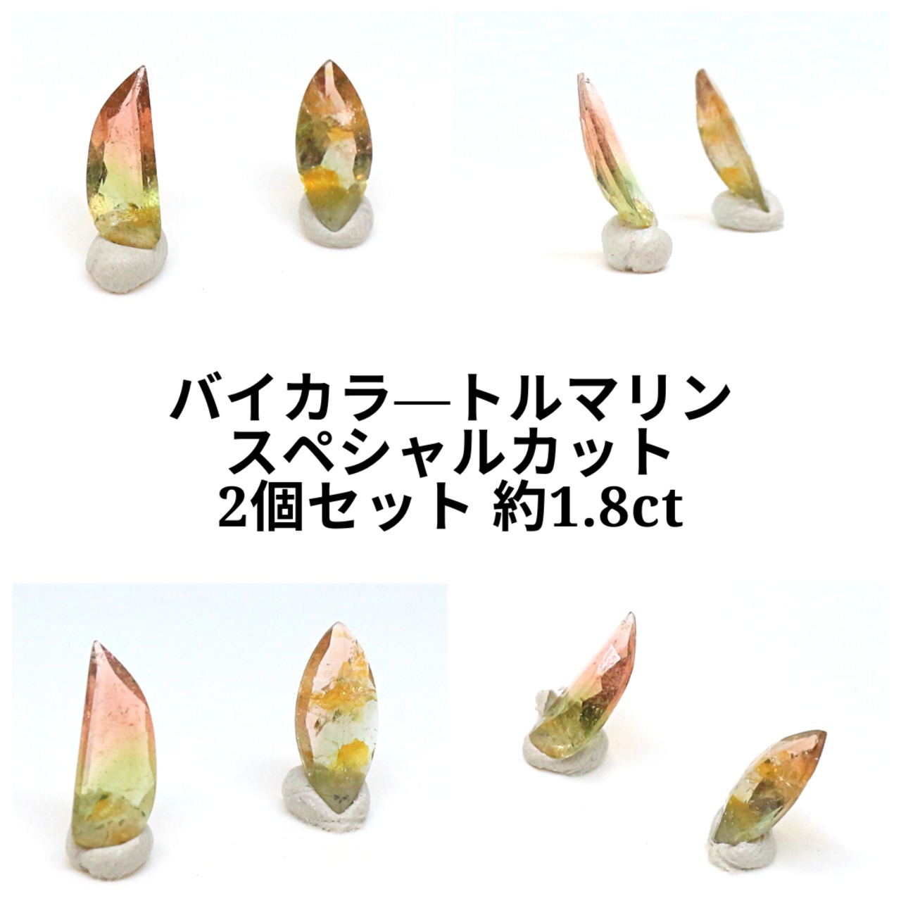 天然石 ルース 裸石 ハンドメイド 素材 バイカラ―トルマリン 2個セット スペシャルカット 1.8ct