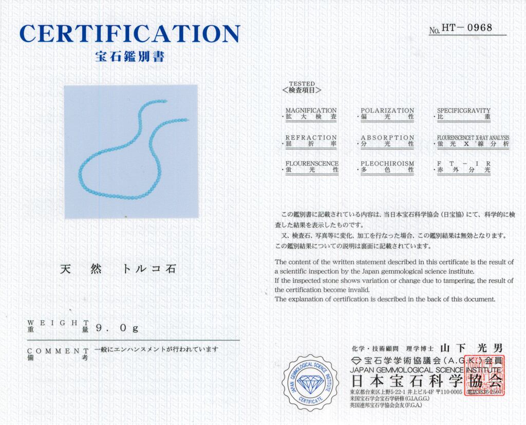 ※ご注文時に鑑別書のコピーを同封いたします。