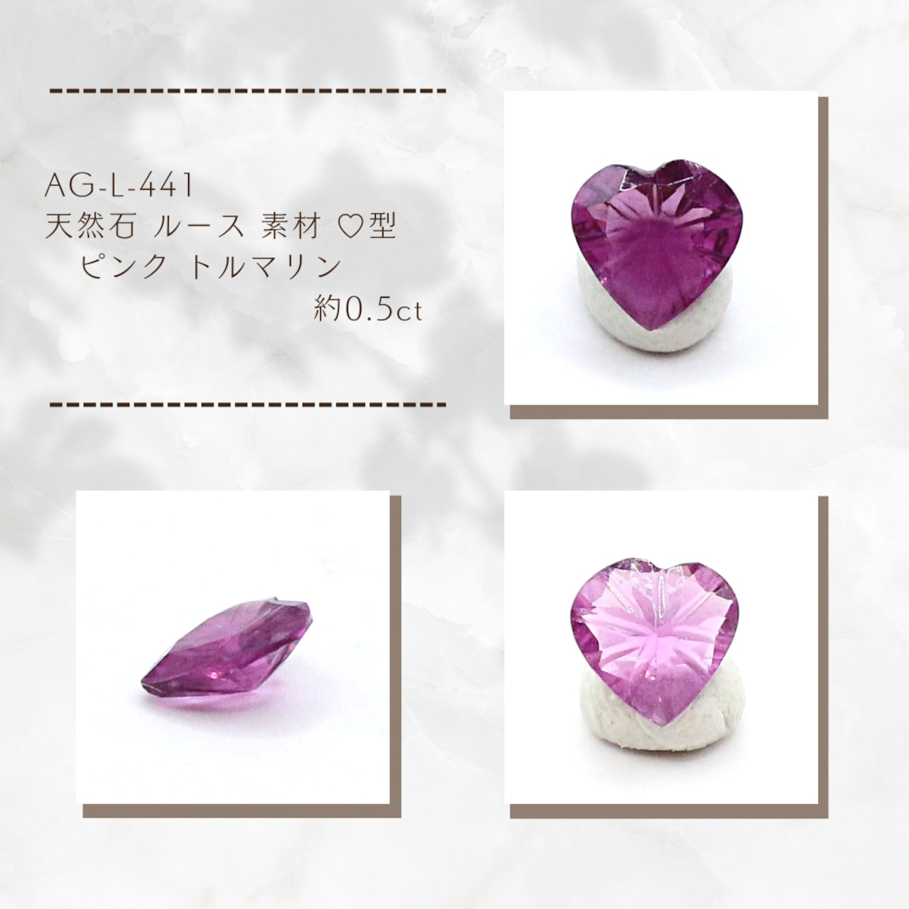 AG-L-441 天然石 ルース 素材 ♡型 ピンク トルマリン 約0.5ct